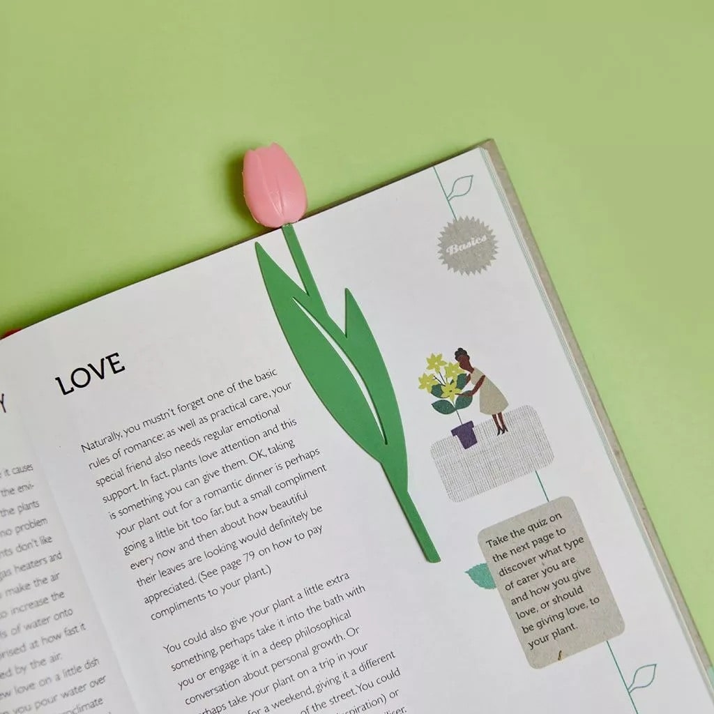 Fin, léger et résistant, il se glisse facilement entre les pages sans abîmer votre livre. Sa jolie fleur de tulipe colorée dépasse du haut de l’ouvrage pour vous indiquer avec style votre point de lecture.