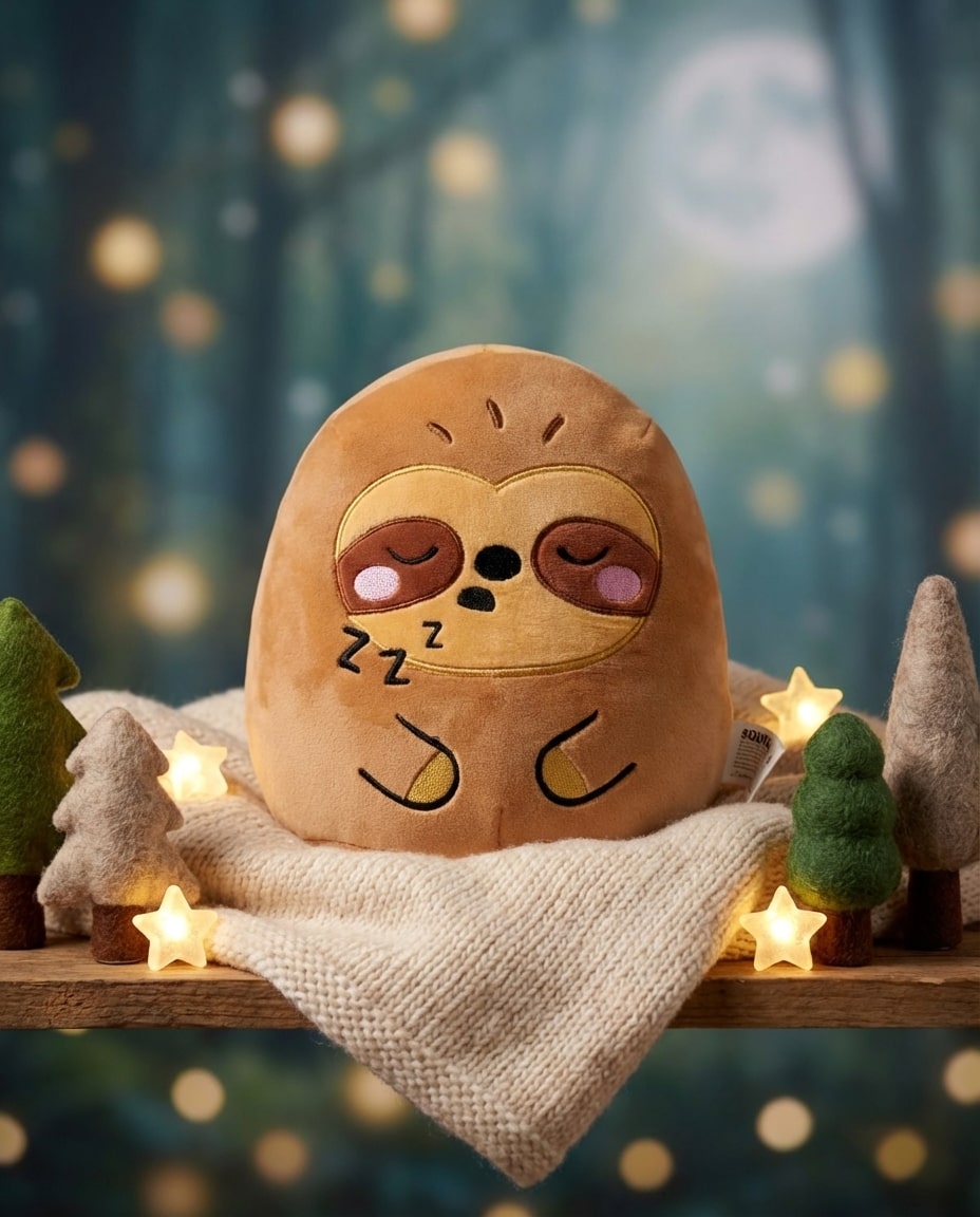 Cette peluche paresseux Squidglys a été conçue pour associer douceur, mignonnerie et confort. Sa forme compacte et sa matière moelleuse invitent naturellement aux câlins et aux moments de détente sur le canapé, dans le lit ou dans un coin lecture.